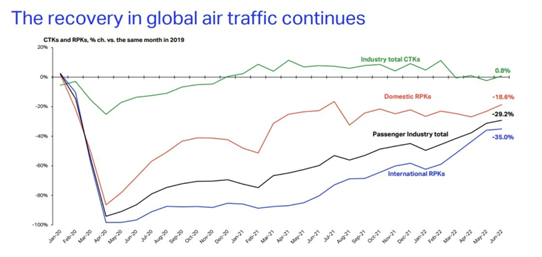 At the beginning of 2022, the optimism was high for the summer, owing to the rollout of vaccination programmes around the world, the lifting of flight restrictions, the opening of borders, and the recovery of air travel at the global level. Nevertheless, as commented in the IATA’s last meeting, no one expected such an abrupt change in the geopolitical situation caused by the war in Ukraine and what this would mean for the industry, reflected in the rapid increase in fuel prices, which in June 2022 rose from 80 to 120 US dollars per barrel.