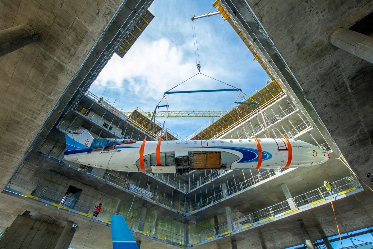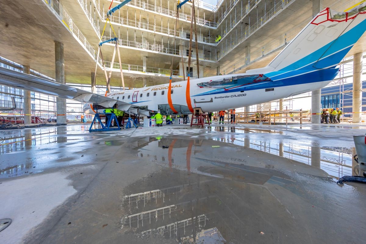 Avia Solutions Group office with a real Bombardier CRJ 200
