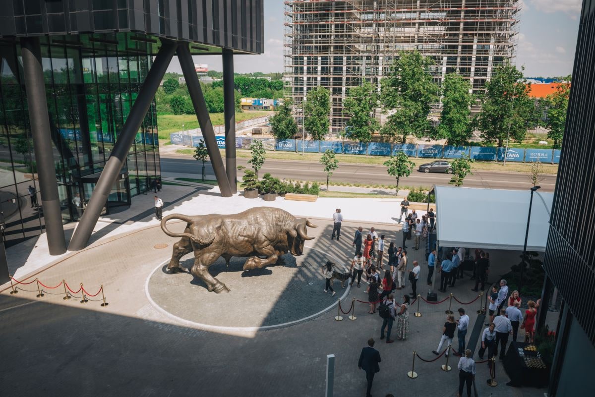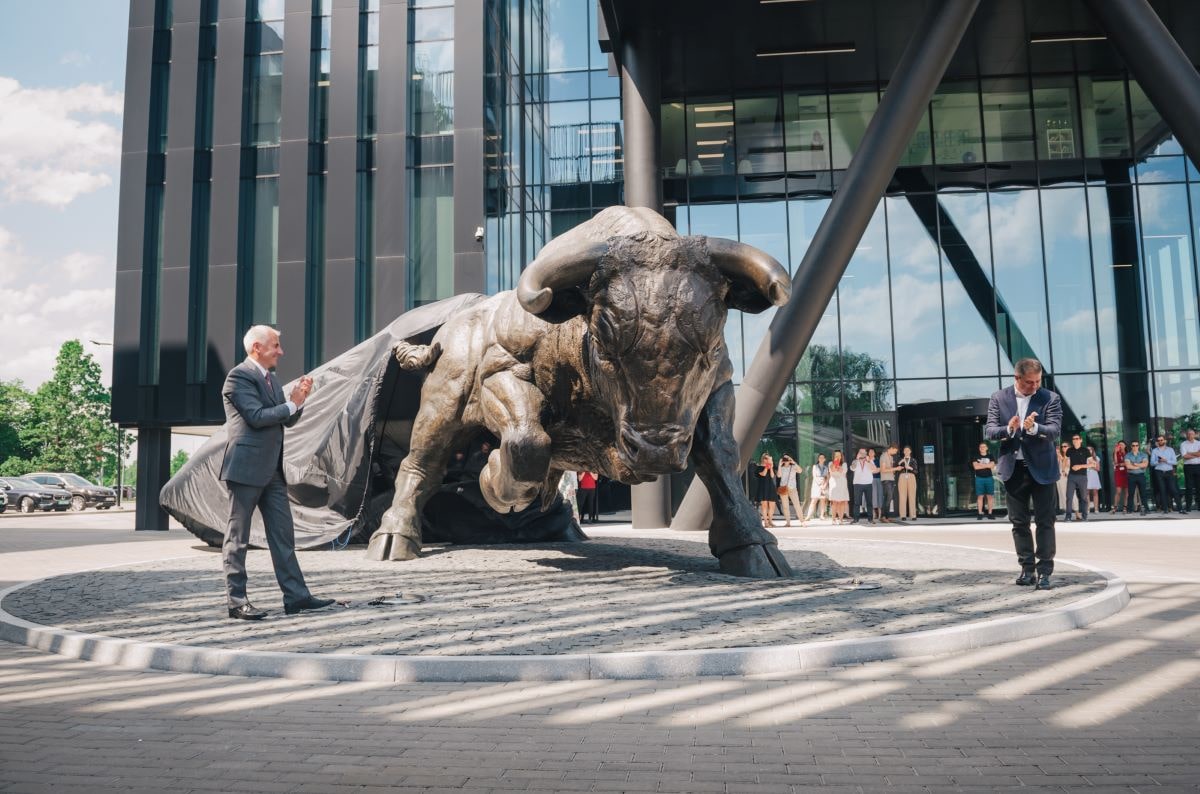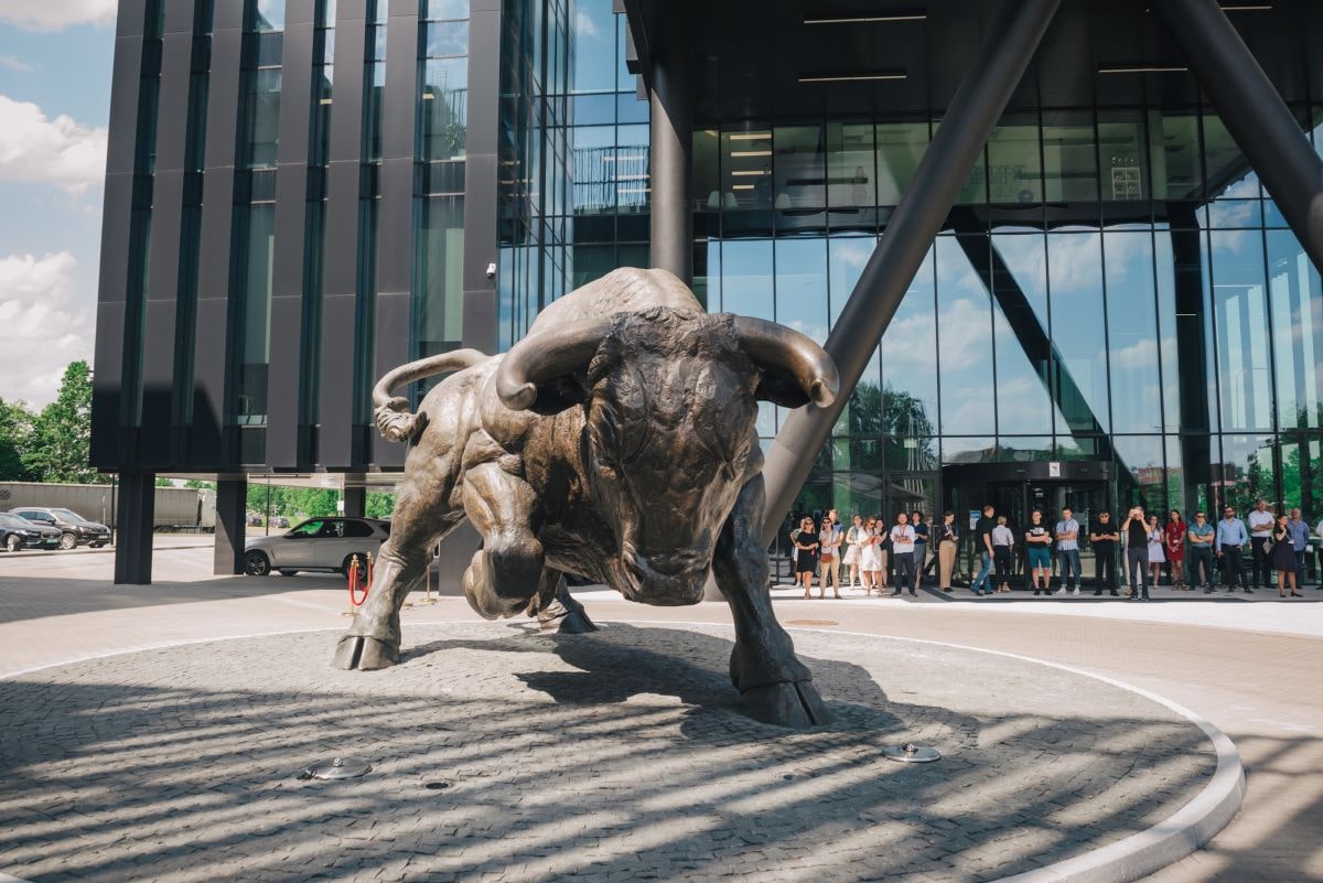 Aviators’ Square, located in Vilnius, Lithuania, is one of the main places of attraction at AeroCity and the place where Avia Solutions Group's symbol - The Triumphant Bull - stands. The Triumphant Bull is the largest bronze bull sculpture in the world and the proof of Avia Solutions Group’s dedication to the entire aviation industry.